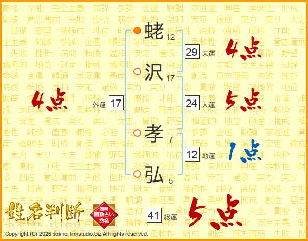 蛯(12画)沢(17画) 孝(7画)弘(5画)