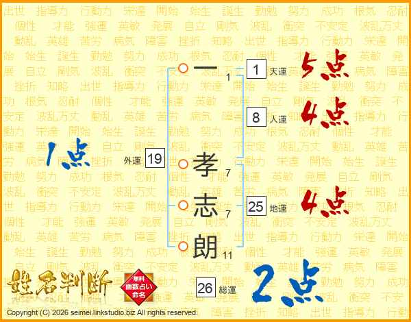 一孝志朗さんの総運は26画の2点!