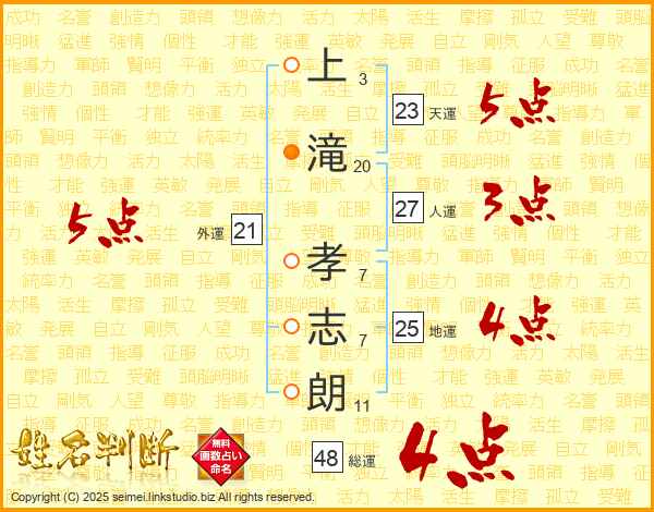 上滝孝志朗さんの天運は23画の5点!