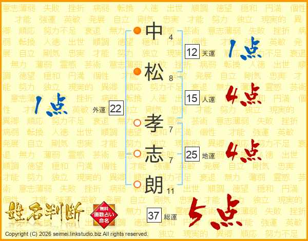 中松孝志朗さんの総運は37画の5点!