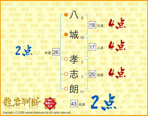 八城孝志朗さんの総運は43画の2点!