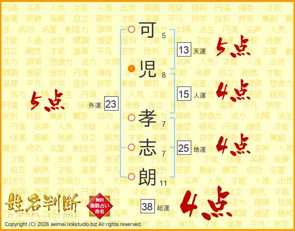 可(5画)児(8画) 孝(7画)志(7画)朗(11画)