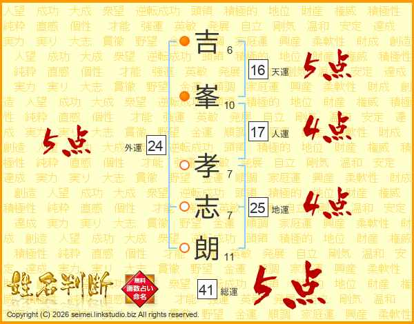 吉峯孝志朗さんの総運は41画の5点!