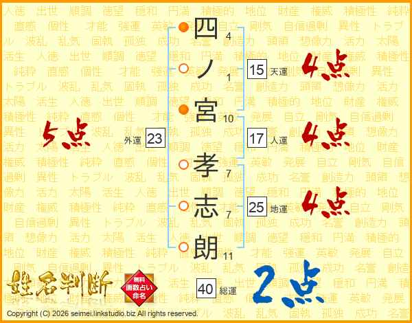 四ノ宮孝志朗さんの外運は23画の5点!