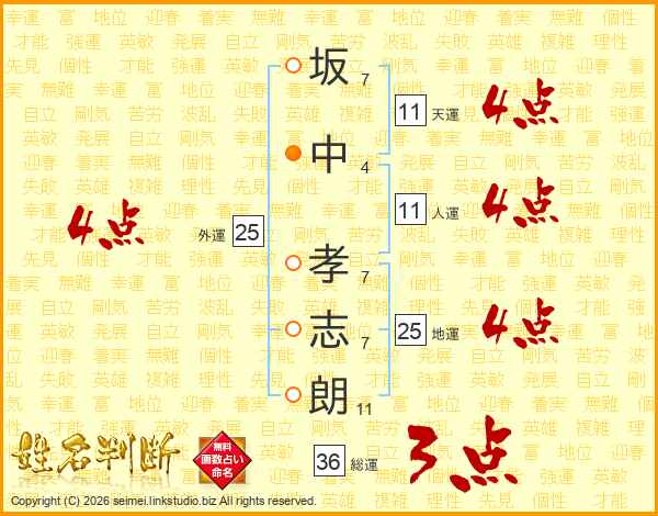 坂中孝志朗さんの人運は11画の4点!