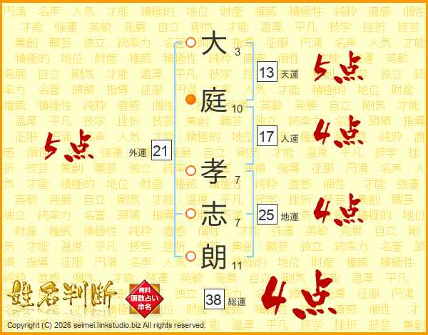 大庭孝志朗さんの総運は38画の4点!