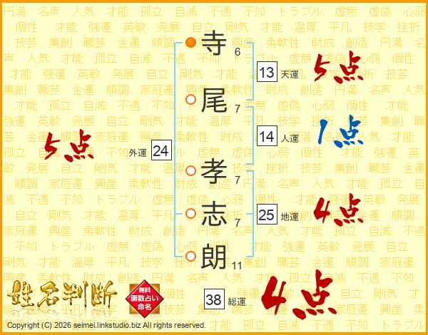 寺尾孝志朗さんの総運は38画の4点!