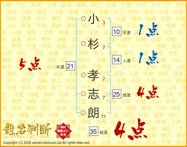 小杉孝志朗さんの総運は35画の4点!