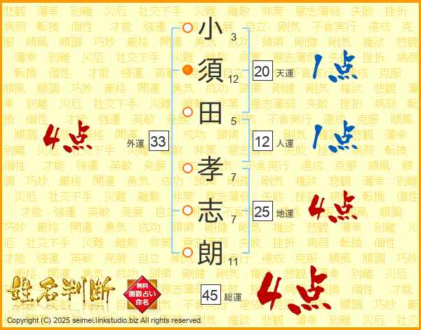 小須田孝志朗さんの総運は45画の4点!