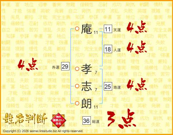 庵孝志朗さんの天運は11画の4点!