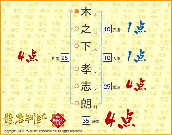 木之下孝志朗さんの総運は35画の4点!