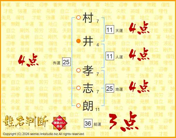 村井孝志朗さんの人運は11画の4点!