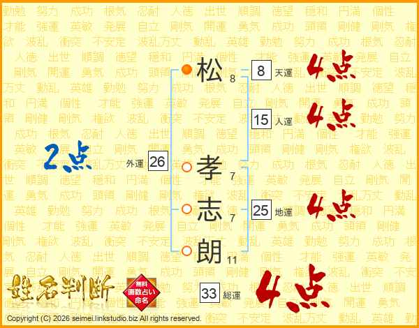 松孝志朗さんの総運は33画の4点!