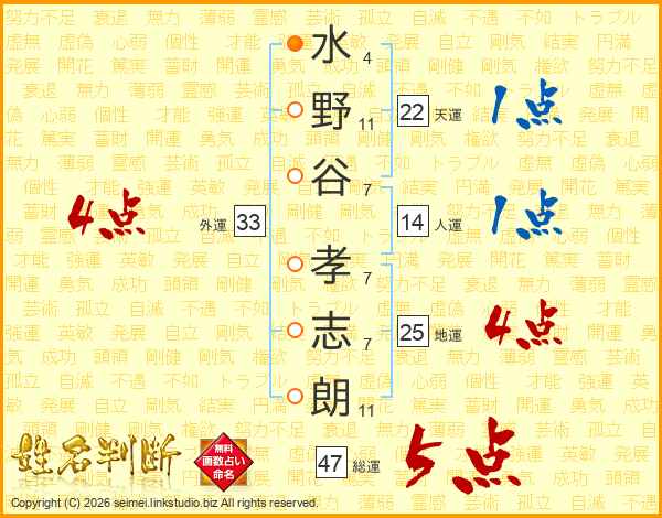 水野谷孝志朗さんの総運は47画の5点!