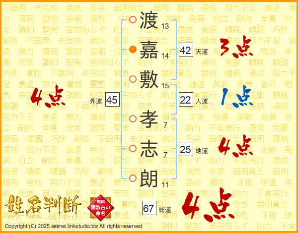 渡嘉敷孝志朗さんの地運は25画の4点!