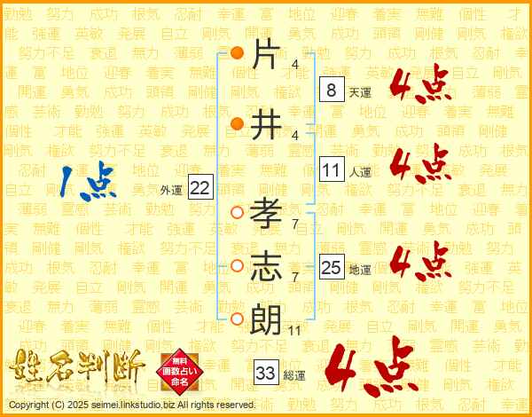 片(4画)井(4画) 孝(7画)志(7画)朗(11画)