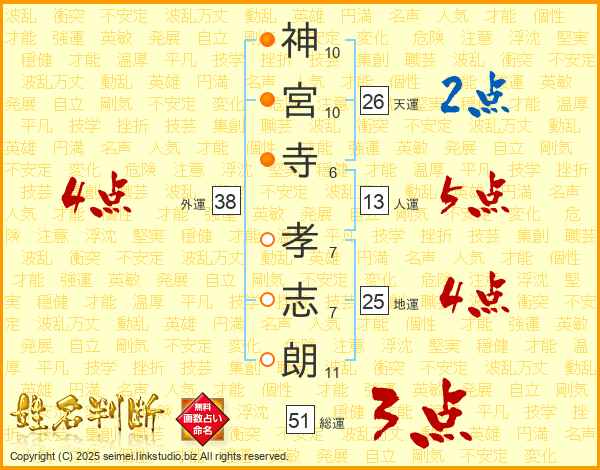 神宮寺孝志朗さんの外運は38画の4点!