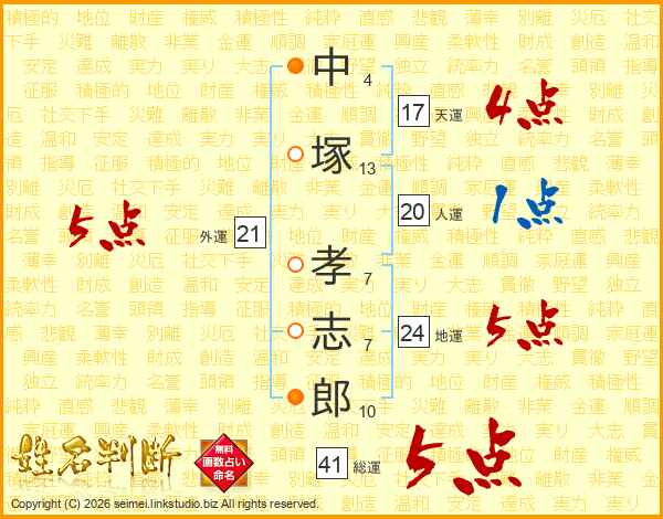 中塚孝志郎さんの総運は41画の5点!
