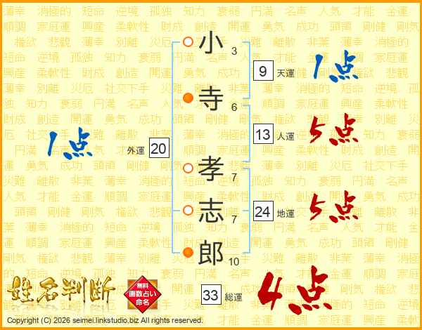 小寺孝志郎さんの総運は33画の4点!