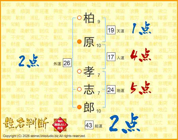 柏原孝志郎さんの天運は19画の1点!