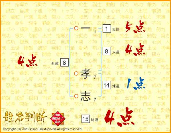一孝志さんの総運は15画の4点!
