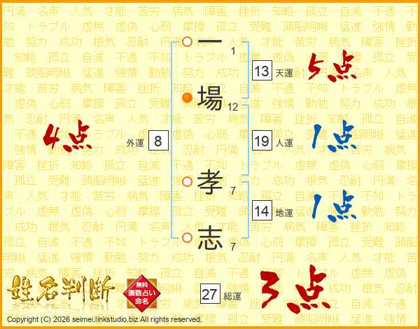 一場孝志さんの天運は13画の5点!