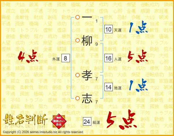 一柳孝志さんの総運は24画の5点!