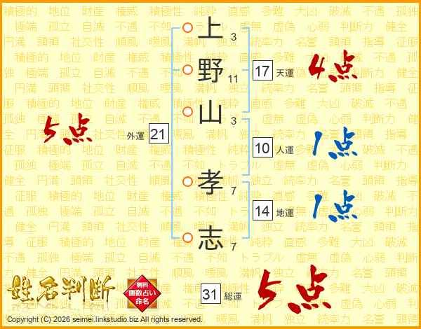 上野山孝志さんの天運は17画の4点!