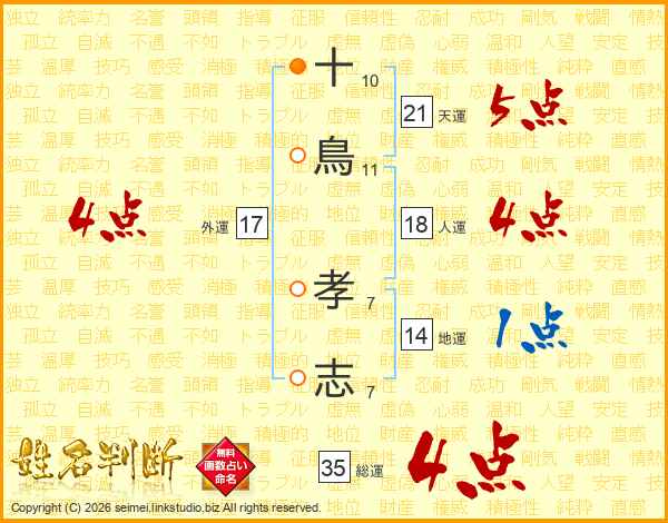 十(10画)鳥(11画) 孝(7画)志(7画)