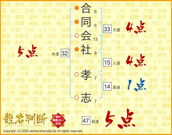 合同会社孝志さんの総運は47画の5点!