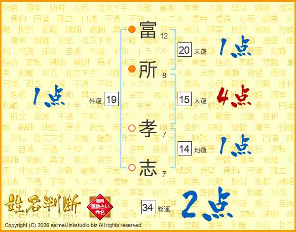 富(12画)所(8画) 孝(7画)志(7画)