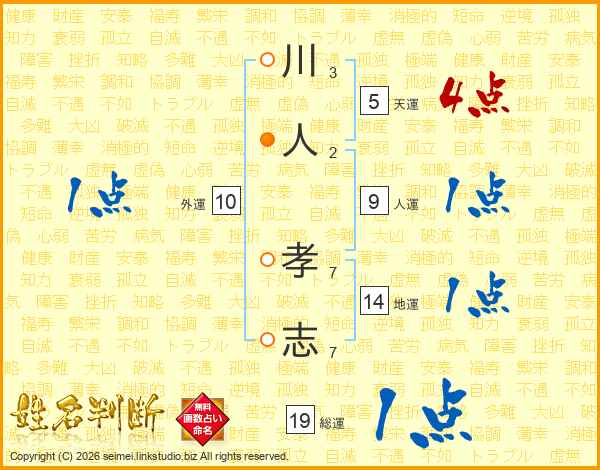川人孝志さんの総運は19画の1点!