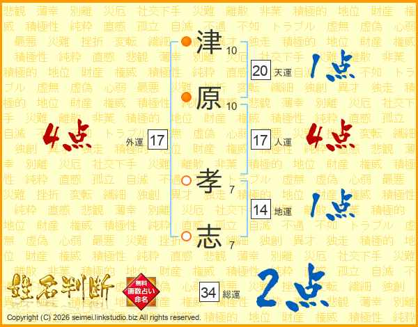 津(10画)原(10画) 孝(7画)志(7画)