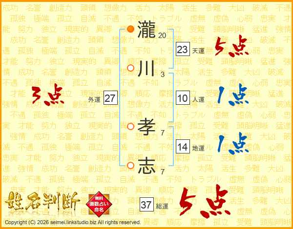 瀧川孝志さんの総運は37画の5点!