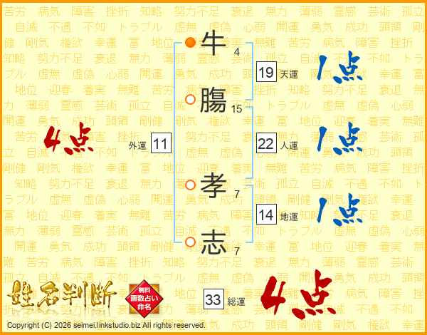 牛膓孝志さんの総運は33画の4点!