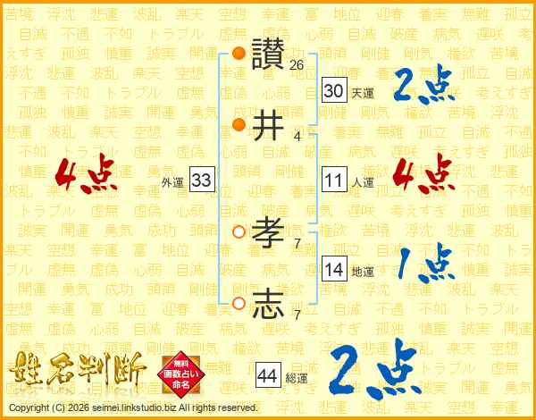 讃(26画)井(4画) 孝(7画)志(7画)