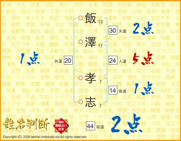 飯澤孝志さんの総運は44画の2点!