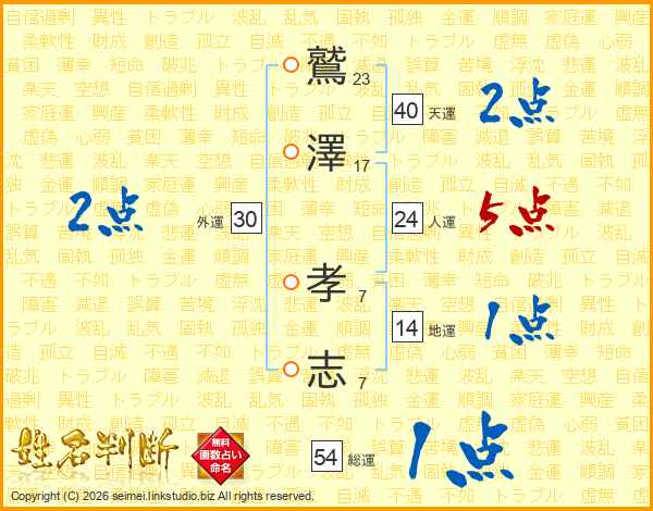 鷲澤孝志さんの総運は54画の1点!