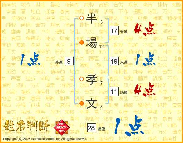 半場孝文さんの天運は17画の4点!