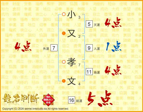 小又孝文さんの総運は16画の5点!