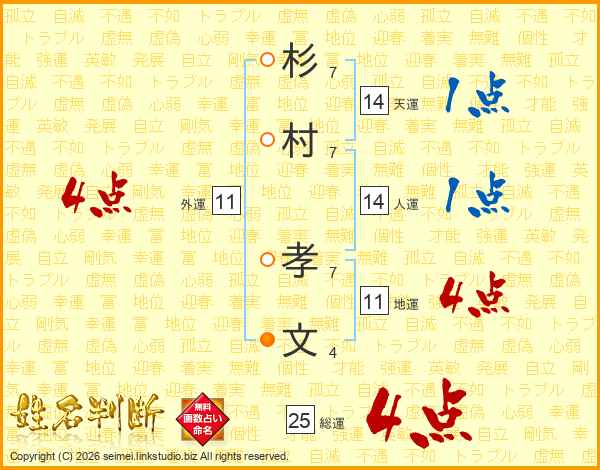 杉村孝文さんの天運は14画の1点!