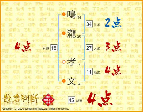 鳴瀧孝文さんの総運は45画の4点!