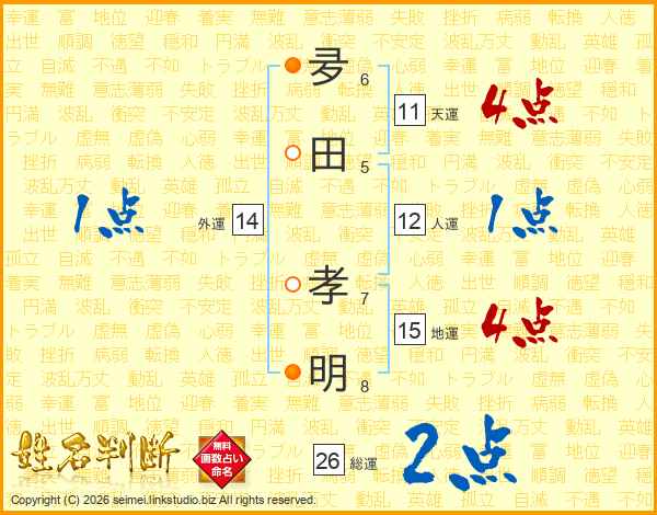 夛田孝明さんの総運は26画の2点!