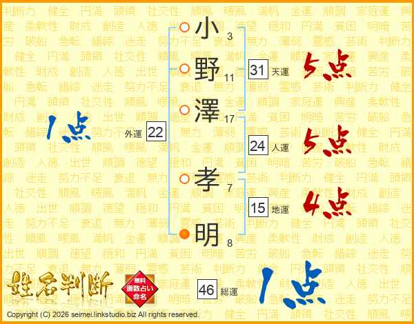 小野澤孝明さんの総運は46画の1点!