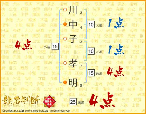 川中子孝明さんの総運は25画の4点!