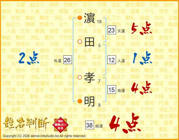 濵田孝明さんの総運は38画の4点!