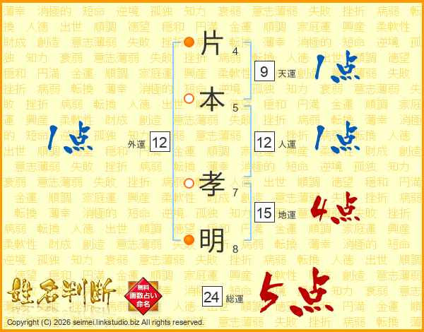 片本孝明さんの総運は24画の5点!