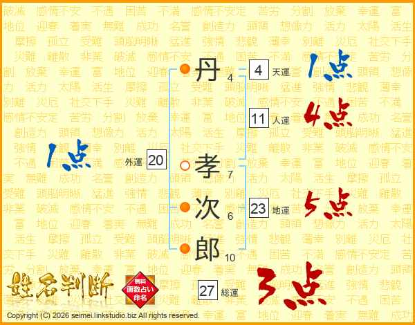 丹(4画) 孝(7画)次(6画)郎(10画)