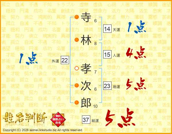 寺林孝次郎さんの総運は37画の5点!