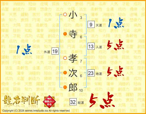 小寺孝次郎さんの総運は32画の5点!